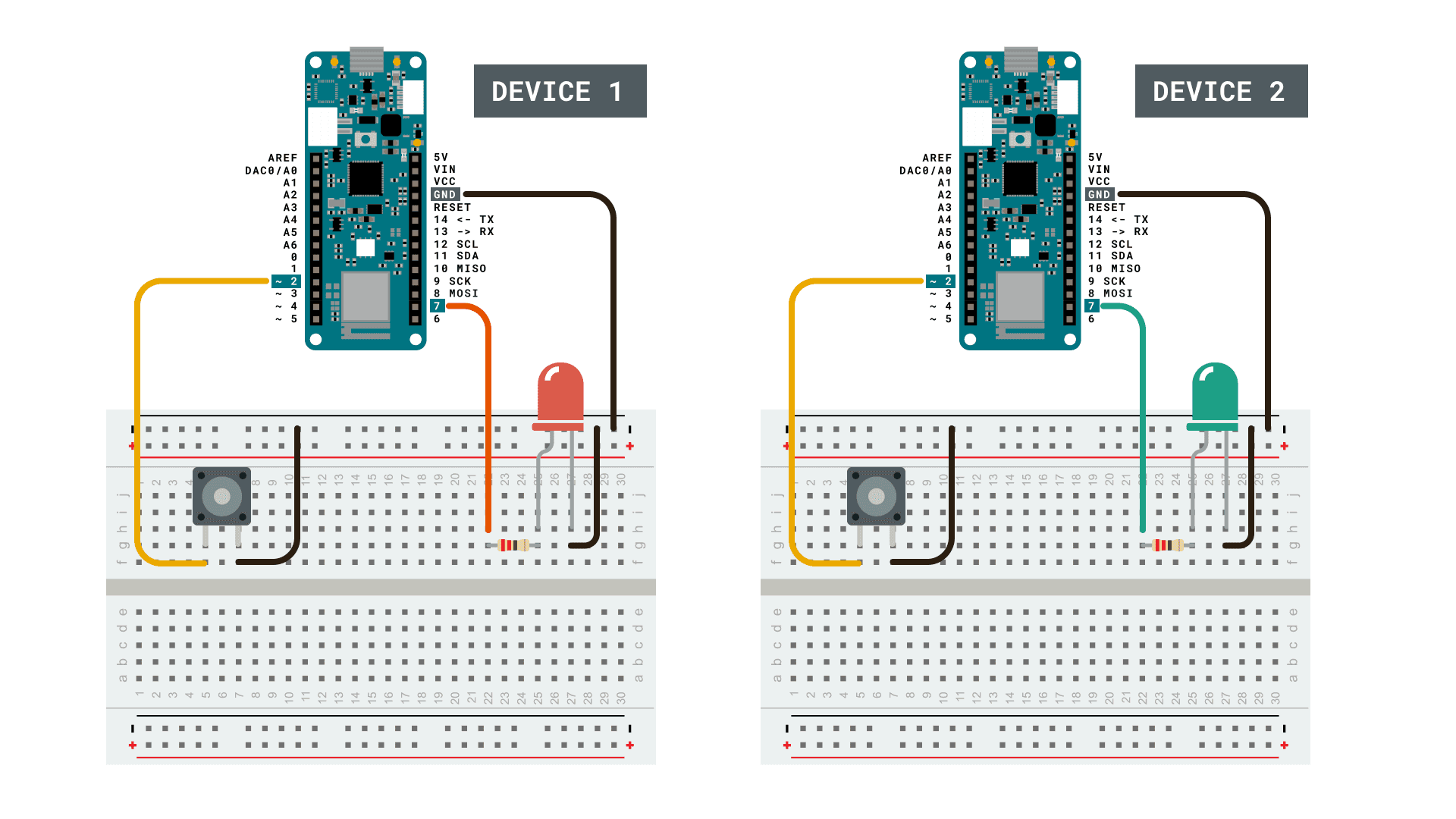 • The button on Device_2 will control the LED on Device_1.