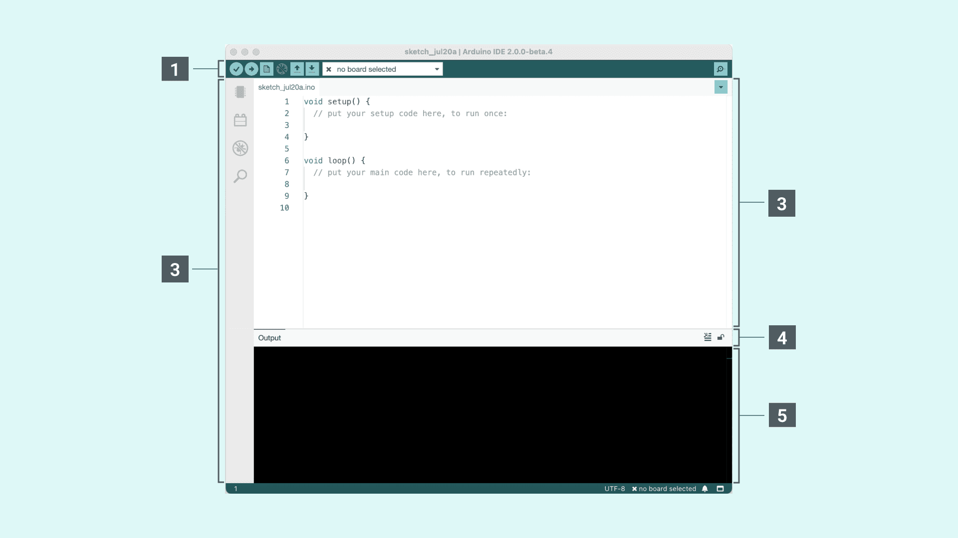 2. Now, you need to select the right board & port. This is done from the toolbar. Make sure you select the board that you are using. If you cannot find your board, you can add it from the board manager in the sidebar.
