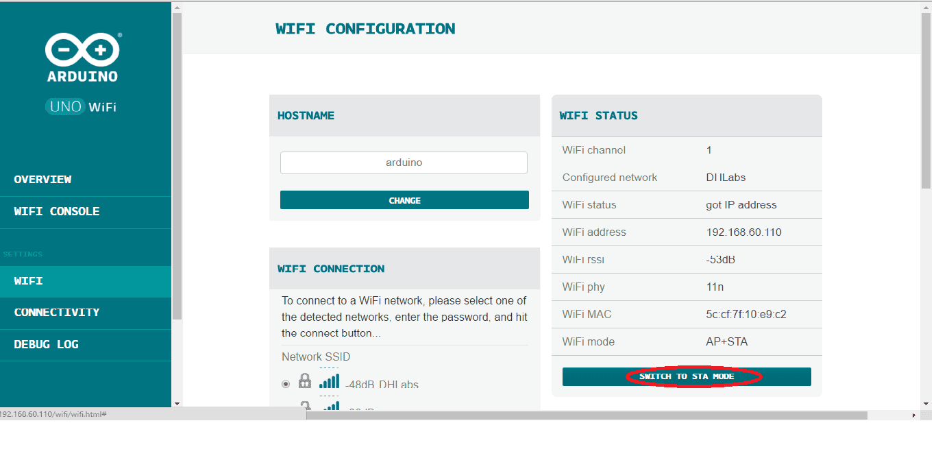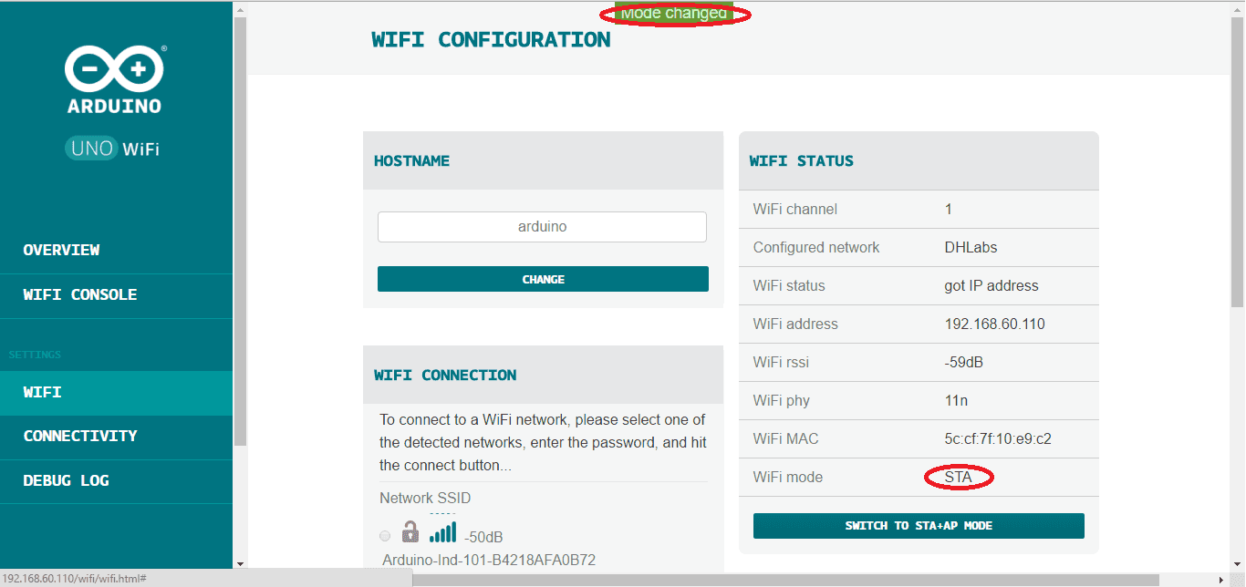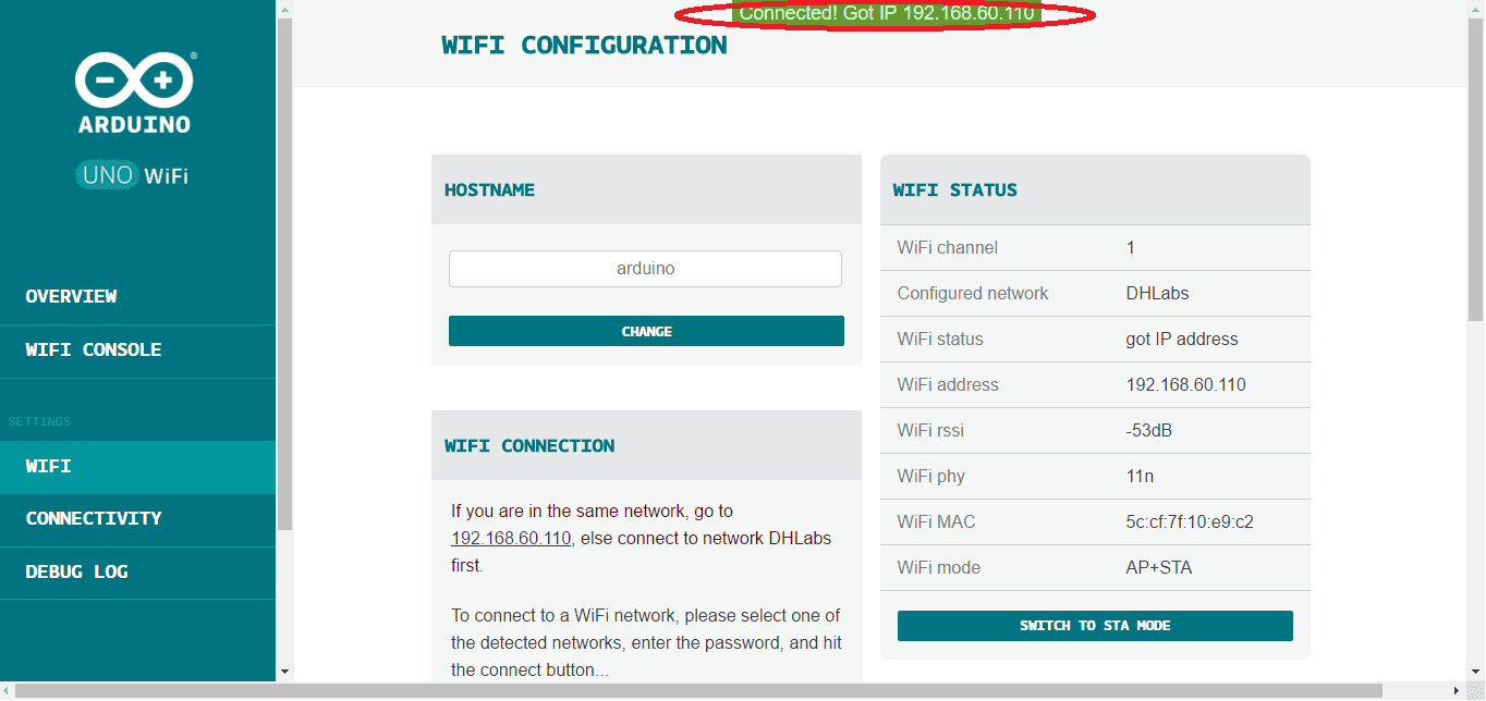 Arduino UNO WiFi STA mode