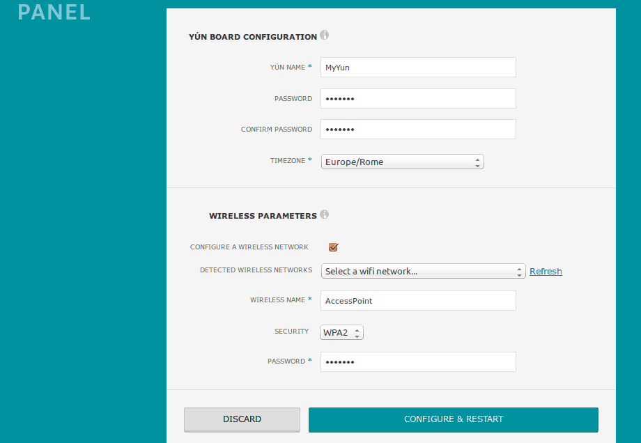 In the Yún NAME field, give your Shield a unique name. You'll use this to refer to it in the future.