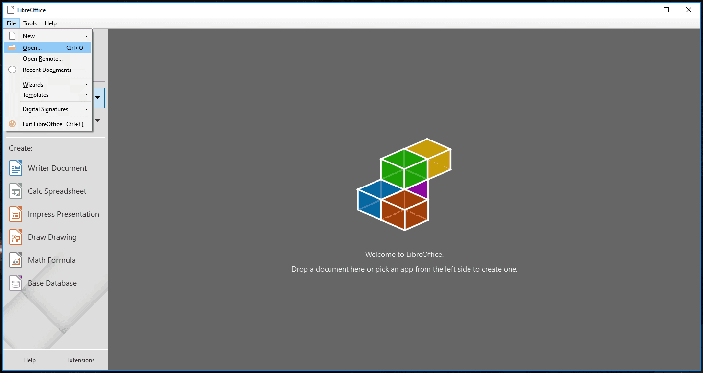 Figure 18: Navigation flow menu in LibreOffice to open the CSV file