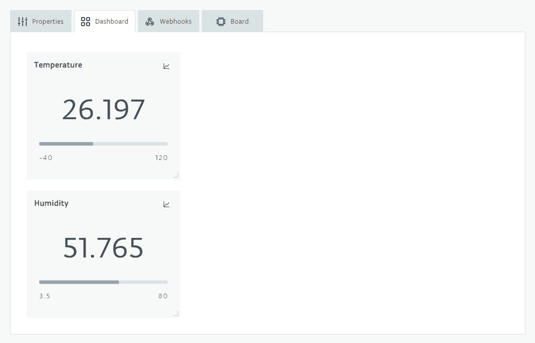 In this example, you are sending data from the board to the Arduino Cloud and graphing it using the widgets on the Cloud's dashboard. By adding the properties to the Thing as described earlier in this experiment, you will have enabled them to be graphed almost automagically.