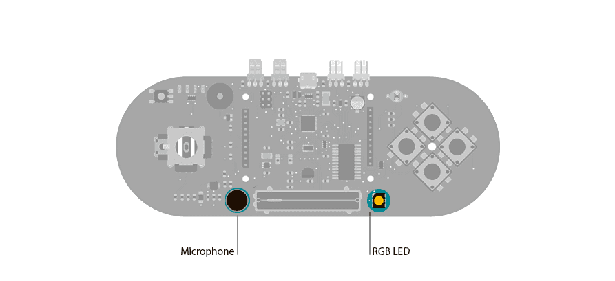 This sketch shows you how to read the microphone sensor. The microphone will range from 0 (total silence) to 1023 (really loud). It uses the sound level to set a brightness level for the green LED. When you're using the sensor's reading (for example, to set the brightness of the LED), you map the sensor's reading to a range between the minimum and the maximum.