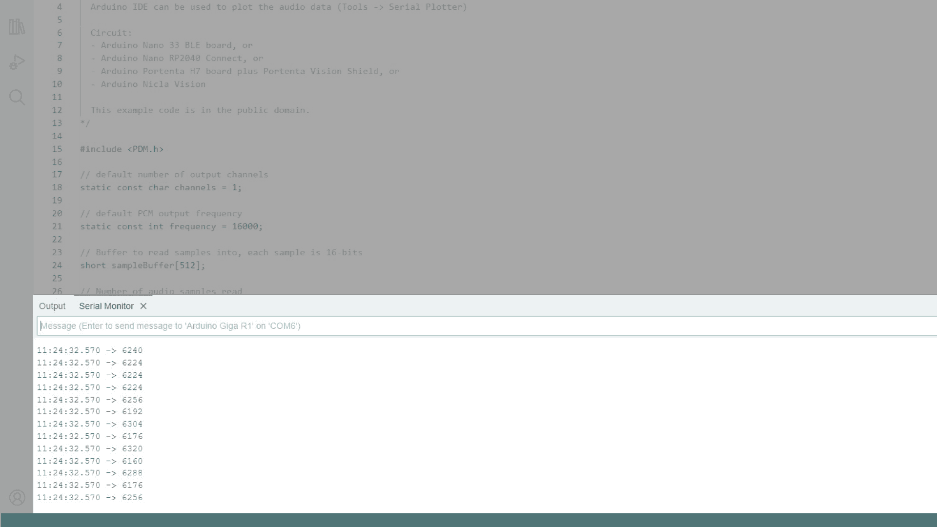 The GIGA R1 Board Package includes a sample sketch called PDM, and in this section it is explained in more detail.
