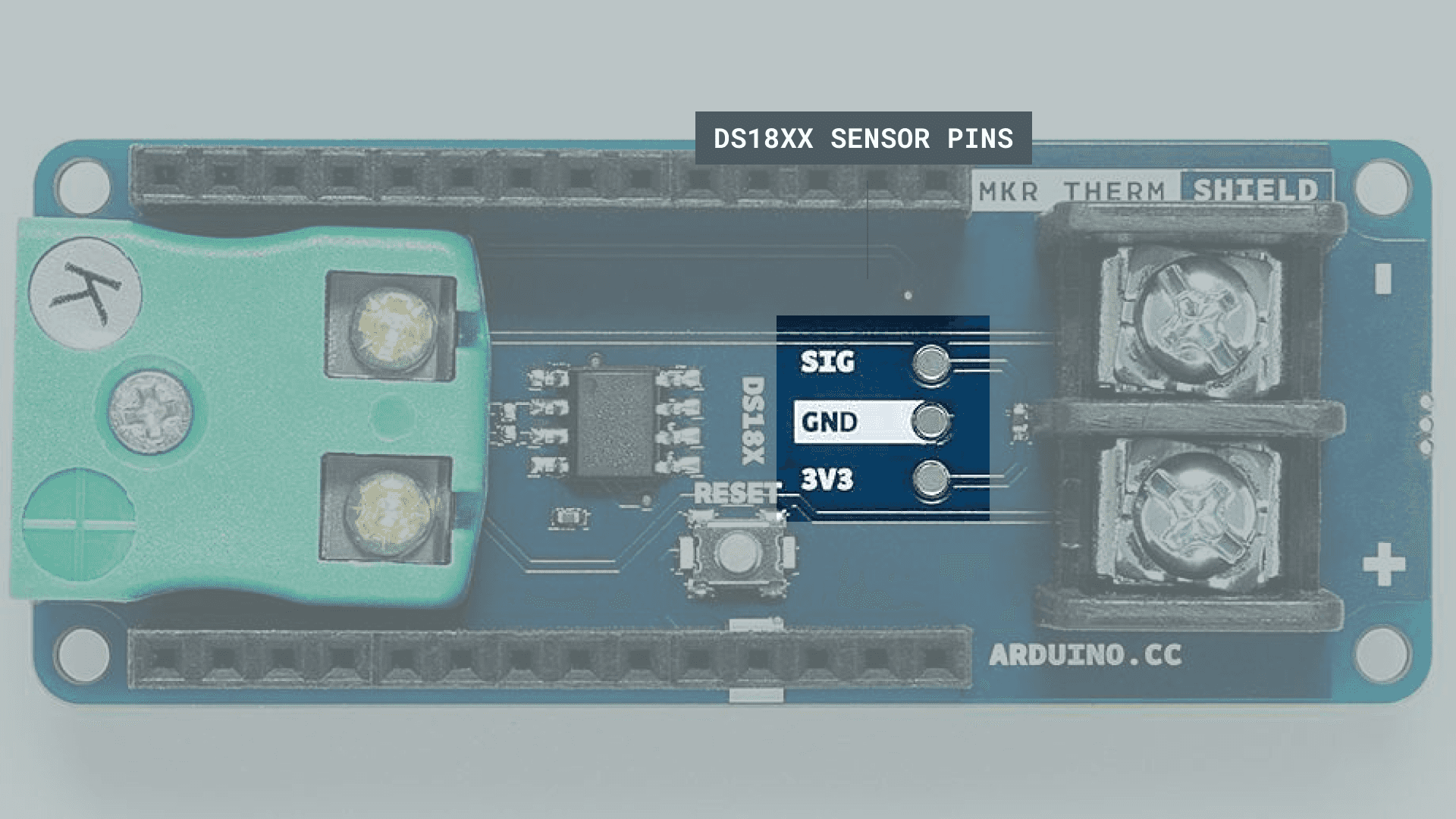 Then, we need to connect the thermocoupler to the shield.