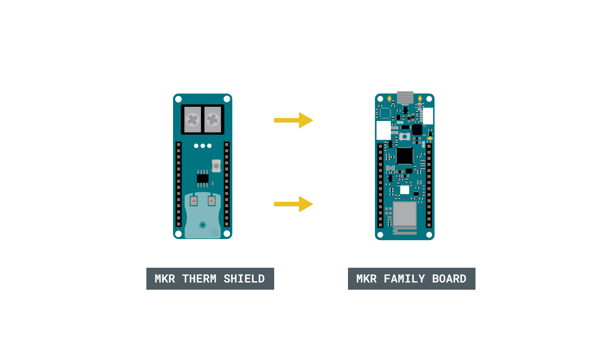 Begin by mounting the MKR THERM Shield on top of a MKR family board.