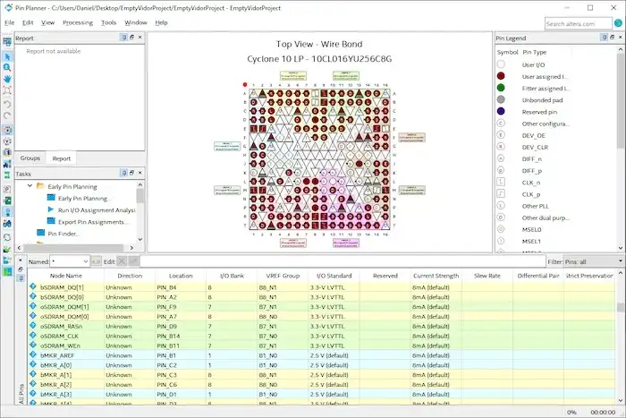 The Pin Planner with the pins for the Vidor 4000 uploaded.