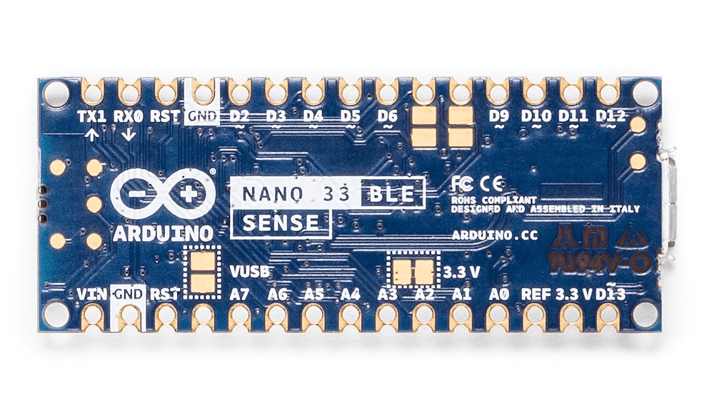 Unlike classic Arduino Uno, the board combines a microcontroller with onboard sensors which means you can address many use cases without additional hardware or wiring. The board is also small enough to be used in end applications like wearables. As the name suggests it has Bluetooth® Low Energy connectivity so you can send data (or inference results) to a laptop, mobile app or other Bluetooth® Low Energy boards and peripherals.