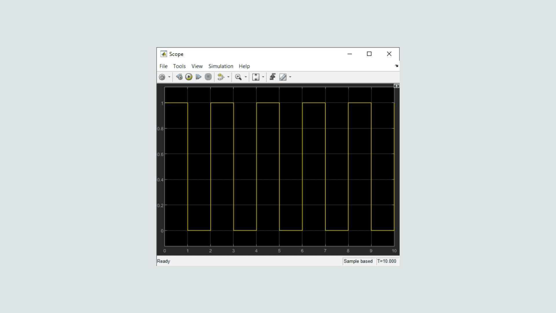 12. Double click on the Scope block. You should see a square wave with an amplitude of 1, a duty cycle of 50% and a period of 2.