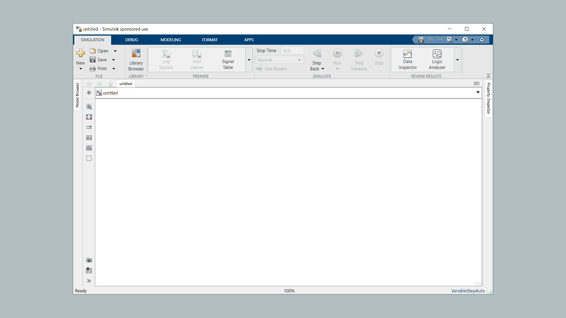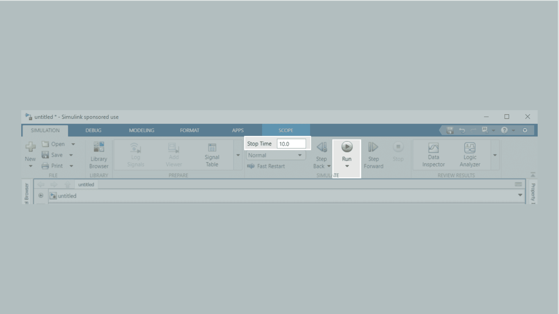 11. We can now run a simulation. In the Simulation ribbon set the Stop Time to 10 seconds then click on Run. After a few seconds the simulation should be complete.