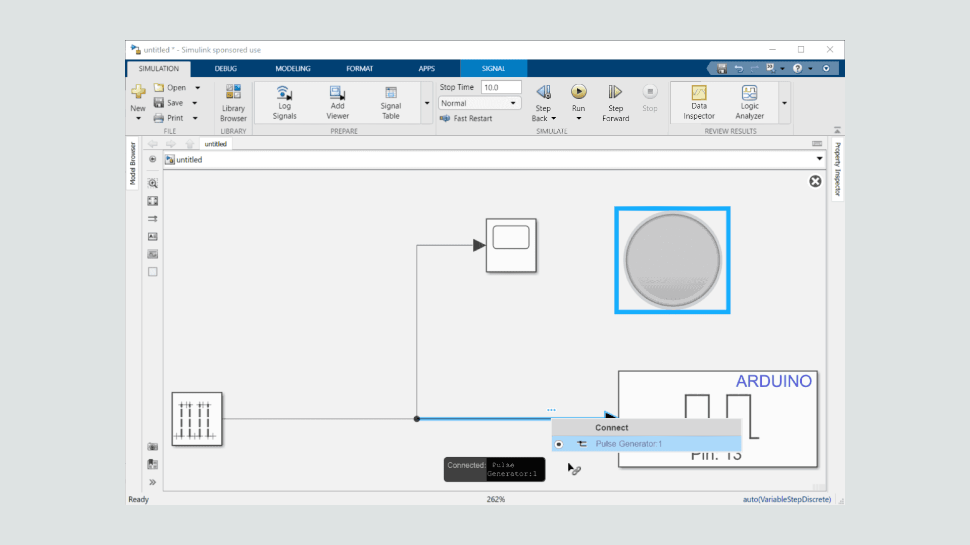 - Connected IO mode has limited compatibility with the Arduino Simulink blocks. Try using External Mode for improved simulation capabilities.