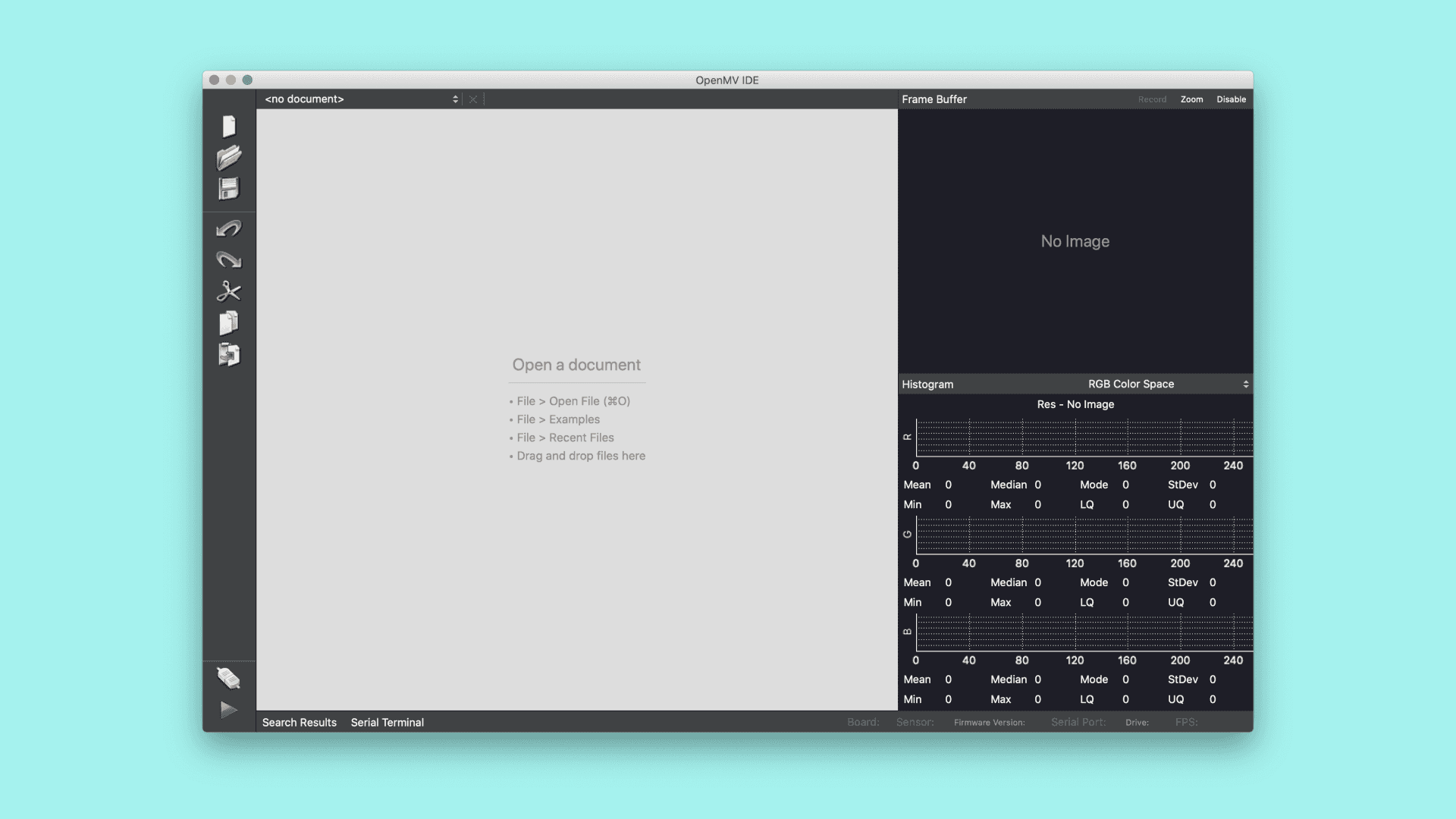 The OpenMV IDE after starting it
